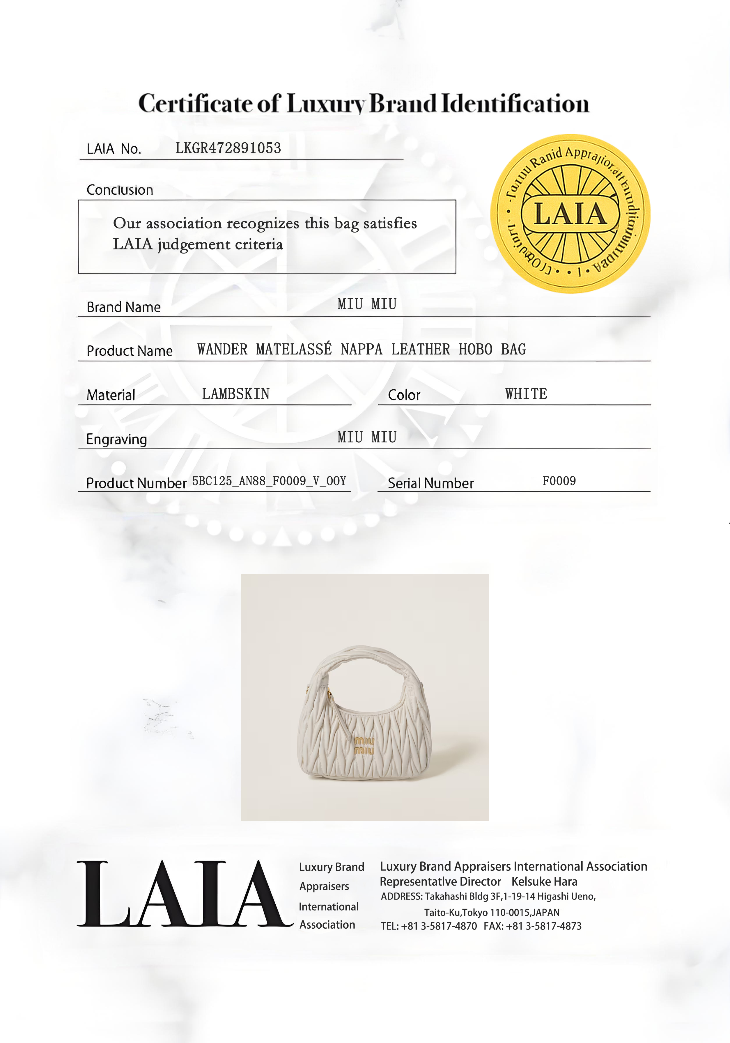 想像以上に美しい品質に感動しました!ミュウミュウのこのバッグは写真よりずっと繊細な光沢感があり、軽いのに収納力もバッチリ。銀座の店舗で見たものと全く同じクオリティで、自宅で開封できるのが嬉しかったです。配送も迅速で、包装はまるで贈り物のようでした。また購入します!