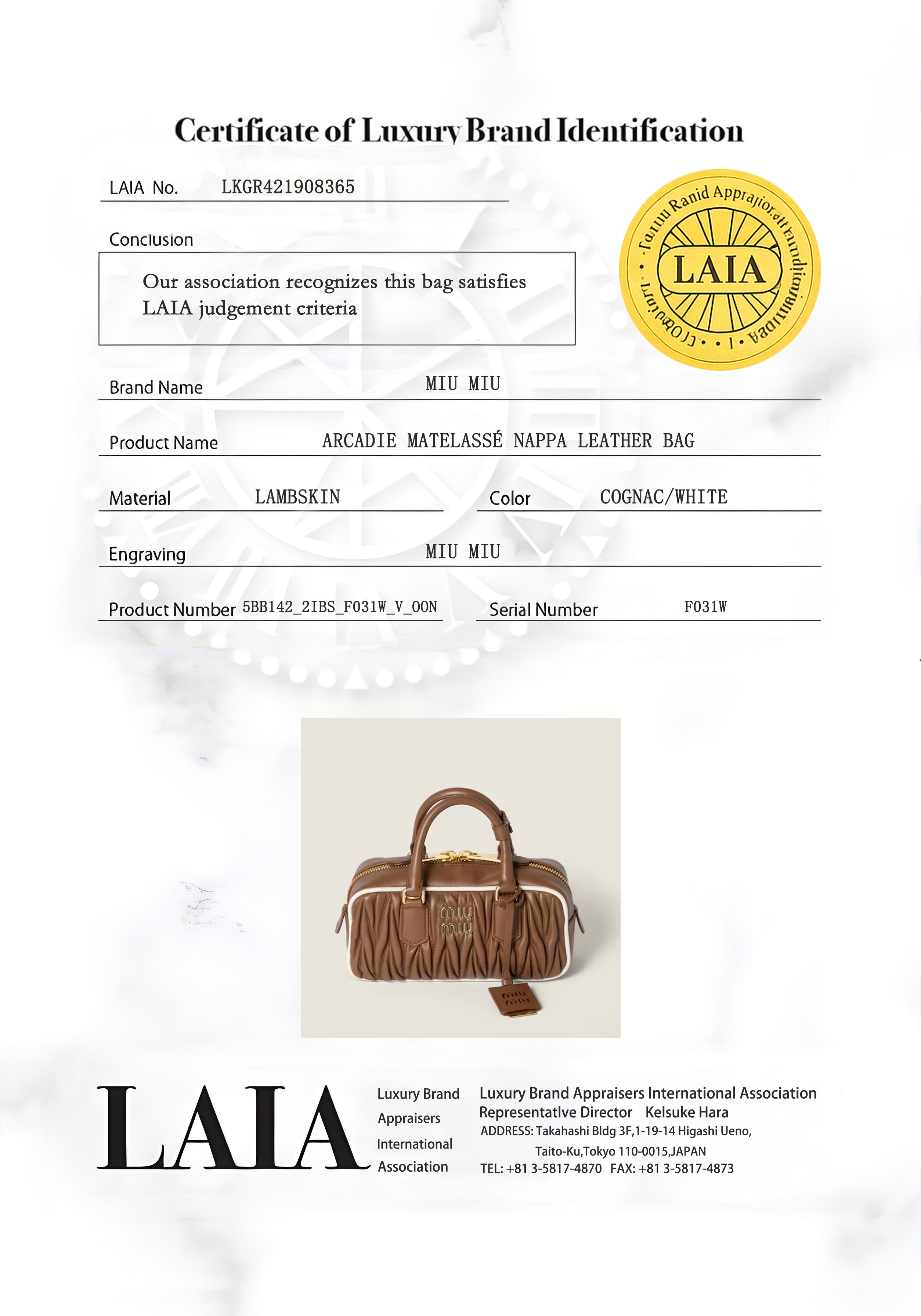 想像以上に美しい品質に感動しました!ミュウミュウのこのバッグは写真よりずっと繊細な光沢感があり、軽いのに収納力もバッチリ。銀座の店舗で見たものと全く同じクオリティで、自宅で開封できるのが嬉しかったです。配送も迅速で、包装はまるで贈り物のようでした。また購入します!