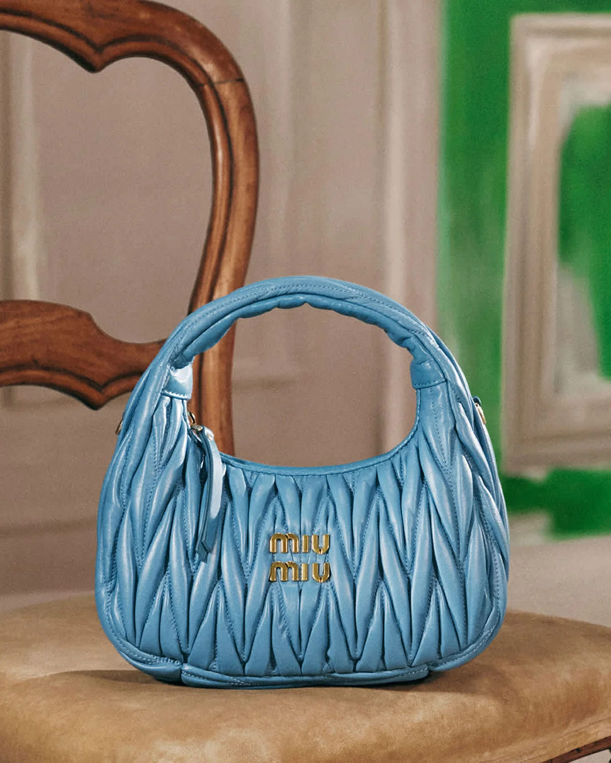舞台はクラシックなブルジョワ風アパート。日常的でありふれた空間が、彼女の感性によって徐々に個性あふれるクリエイティブな世界へと変化していく様子が印象的に表現されている。そのストーリーは、単なるファッションビジュアルにとどまらず、ミュウミュウが提案する“自分らしさ”の価値を象徴している。